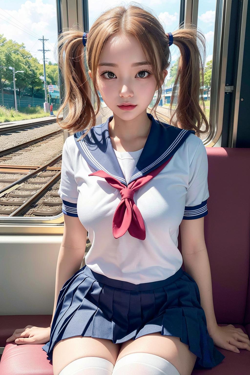 (serafuku, student sailor uniform:1.2), pleated skirt, dark blue,