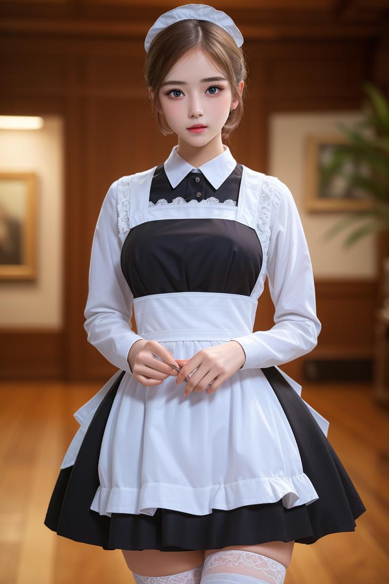 1girl, beautiful face, short hair, beautiful detailed eyes, symmetric eyes, [<lora:traditionalMaidDress_traditionalMaidV1:0.7>:<lora:japaneseDollLikeness_v10:0.3> <lora:twbabe_3:0.3>:0.3], (ulzzang-6500-v1.1:0.3)