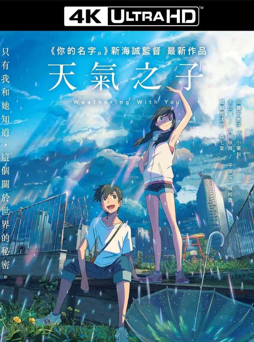高一那年夏天,帆高(醍醐虎汰朗配音)离开位在离岛的家乡,独自一人来到东京,拮据的生活迫使他不得不找份工作,最后来到一间专门出版奇怪超自然刊物的出版社担任写手。不久,东京开始下起连日大雨,仿佛暗示着帆高不顺遂的未来,在这座繁忙城市里到处取材的帆高邂逅了与弟弟相依为命,不可思议的美少女阳菜(森七菜配音)。「等等就会放晴了喔。」阳菜这样告诉着帆高,不久,头顶的乌云逐渐散去,耀眼的阳光洒落街道……原来,阳菜拥有「改变天气」的奇妙能力……