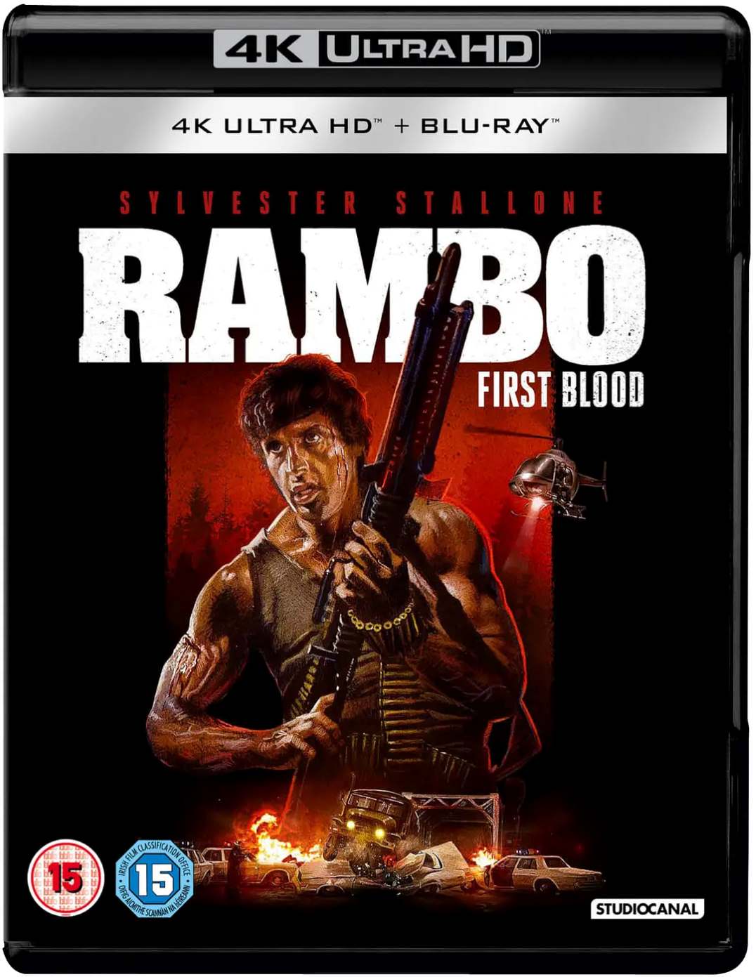 退伍军人兰博(西尔维斯特•史泰龙SylvesterStallone饰)从越南回国,他回到已显得陌生的原居小镇,当地警长(布莱恩•丹内利BrianDennehy饰)看到这个退伍军人的第一眼起,就开始对兰博百般挑剔,甚至将他带回警局肆意侮辱,不堪忍受责打的兰博袭警之后逃走。警长召集大批警察展开对兰博的追捕,兰博逃至荒山野林之中,不断用自己在越战中掌握的游击战术对警察展开反击,他抢劫了一辆武器运输车返回小镇烧毁了商店,法律和武器都不能阻止兰博了。兰博在越战时的长官上校(理查德•克里纳RichardCrenna饰)出现,劝说兰博放下枪械,愤懑已久的兰博吼出了自己的困惑与不甘……