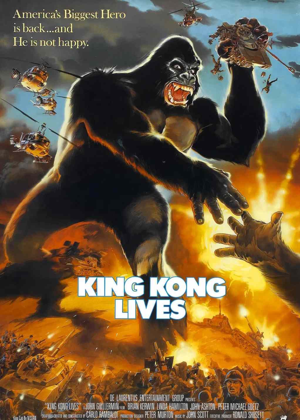 大金刚在军警围捕之下,终于从帝国下厦摔下受重伤,十年后,在乔治亚洲特兰大大学医疗研究,有机会再度复活。为此研发人工心脏,准备为她做换心手术,但要量同类的血液。正当大家一筹莫展时,米奇意外地抓到另一只母猿,并卖给政府以便进行手术,艾咪为此手术执刀,不料手术后的大金刚与母原从回原生地,逃开人类的控制,而被军队重重包围,大金刚被炮击而身受重伤。母猿亦在这次攻击受捕,为展开营救母猿、大金刚将再次肆虐人类……