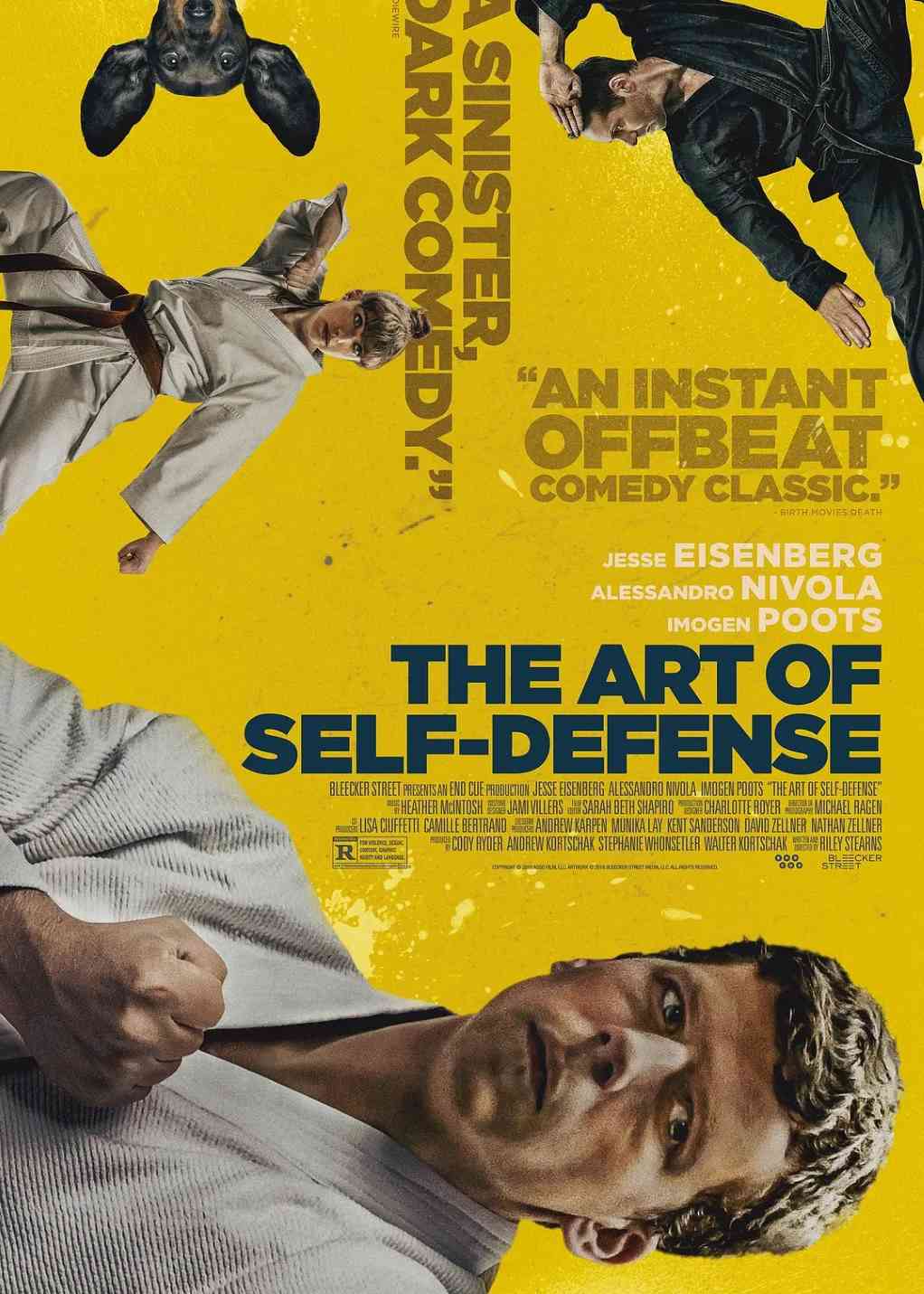 BleeckerStreet购得莱利·斯特恩斯执导的黑色喜剧新片《自卫艺术》的全球发行权,杰西·艾森伯格、伊莫珍·波茨、亚历桑德罗·尼沃拉主演,艾森伯格饰演一个在街上莫名遭遇攻击的倒霉孩子,后加入柔道训练学校跟着极有魅力又充满神秘的师傅(尼沃拉饰)学习自卫防御术,揭开了充满兄弟会情谊、暴力、超男子主义的邪恶世界的面纱,波茨扮演的女主角正努力奋斗想取得一席地位。该片已于周一在肯塔基开拍。