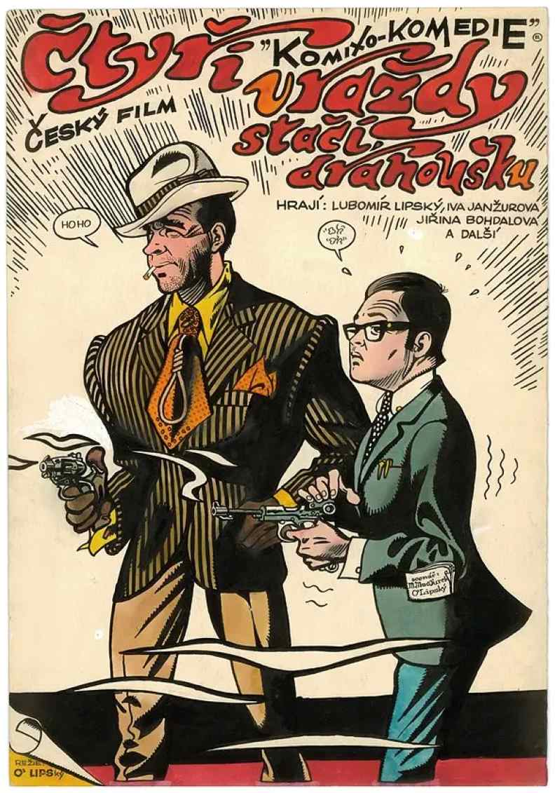 一部非常非常有趣的喜剧。有些花言巧语只能被懂捷克语的人理解(比如无牙帮派头目的演讲)。这部电影中有许多枪杀案,但即使是最小的孩子也喜欢。主要情节是两个敌对帮派(一个来自“Michigo”,另一个来自“SanBonigo”)为支票而斗争,一个安静的学校教师被发现是一个变态的连环谋杀。这部电影与《利莫纳多维乔》和《德迪西特维》一起登上了所有捷克喜剧的榜首。这是一部罕见的电影,优秀的导演和优秀的剧组合作,他们都用巧妙的剧本。同样,所有的卡贾·索德克的“漫画画”都是惊人的。“商业中断”的想法很聪明,而且在每种情况下都非常聪明。这部电影中的每一句话、每一行和每一个手势都非常准时,我个人觉得几乎每一行都非常有趣。