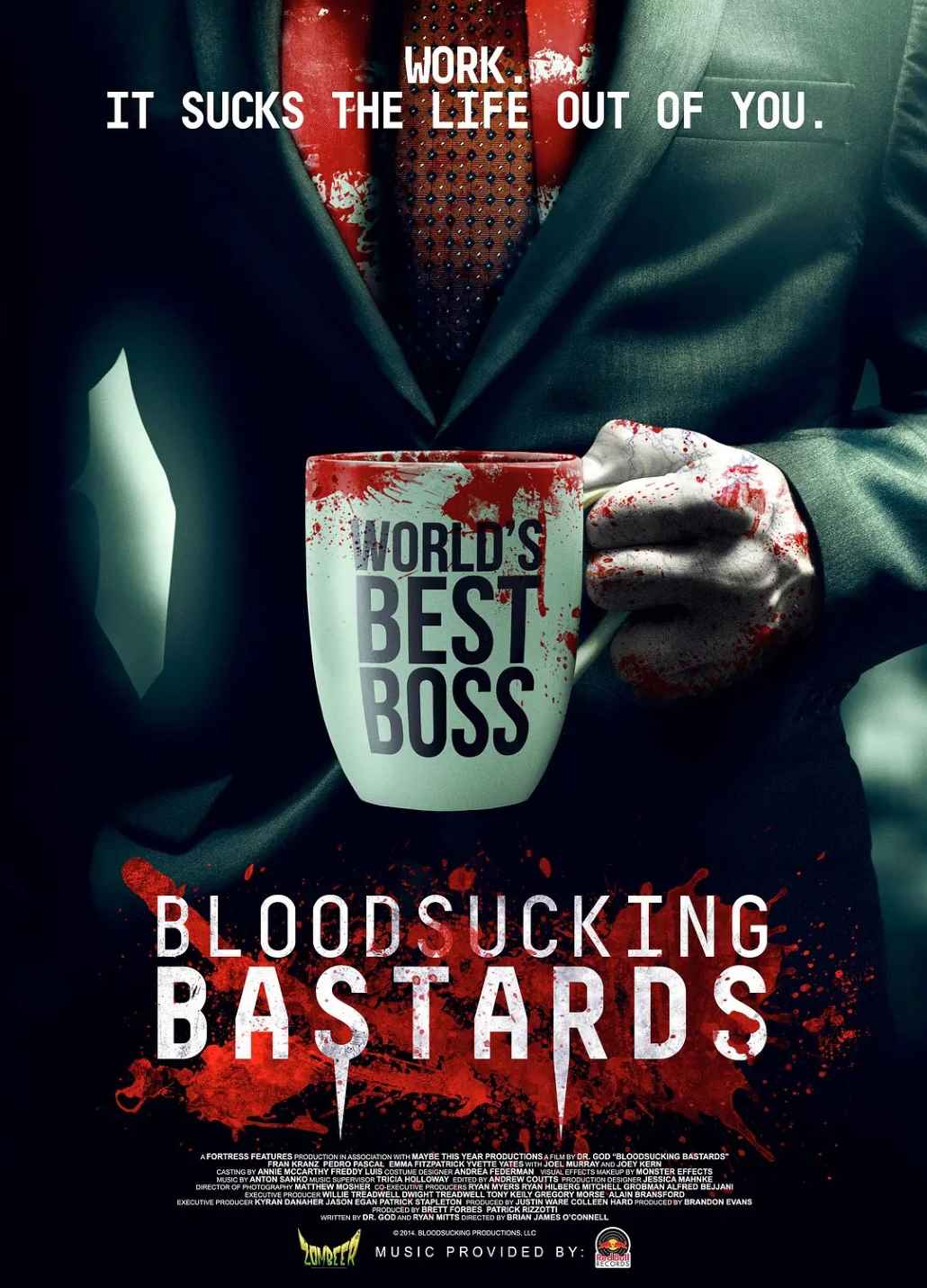 由《权力的游戏》中“红毒蛇”奥柏伦马泰尔的演员PedroPascal主演的喜剧恐怖电影An action-packed horror comedy, Bloodsucking Bastards stars Fran Kranz as Evan, a dutiful and overworked employee stuck at a soul-killi ng corporation with his beautiful co-worker and girlfriend Amanda (Emma Fitzpatrick) and his slacker best friend Tim (Joey Kern). Evans world begins to crumble when Amanda dumps him and his boss Ted (Joel Murray) hands his coveted promotion to his nemesis Max (Pedro Pascal). When his office mates start going through disturbing changes, Evan must find a way to stop the evil brewing admist the cubicles, and rescue his workplace pals before his life and career go from dead-end… to just dead.