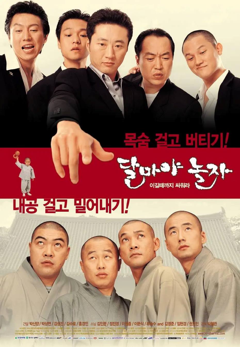 黑帮头目在奎(朴信阳 饰)因在帮派争斗中陷入不利,按照大老板的吩咐,率领四名手下远赴深山寺庙中躲避仇家和警察,黑帮五人组请求主持和四位和尚容纳他们停留一周时间,僧人们难敌黑帮的赖皮作风,只得暂时容忍。经过了吵吵闹闹的一周共同生活之后,在奎试图联络大老板,但因深山通信不畅,无法获得确切信息,只得向主持再次要求延长停留时间,和尚们终于反抗,提出用游戏来决定黑帮的去留,双方各自选择擅长的竞赛,从一局定输赢打到五局三胜不可开交,最终黑帮成员们从主持的游戏中胜出,再次滞留寺庙。久未发威的和尚忍无可忍,令双方的争斗陷入了白热境地……