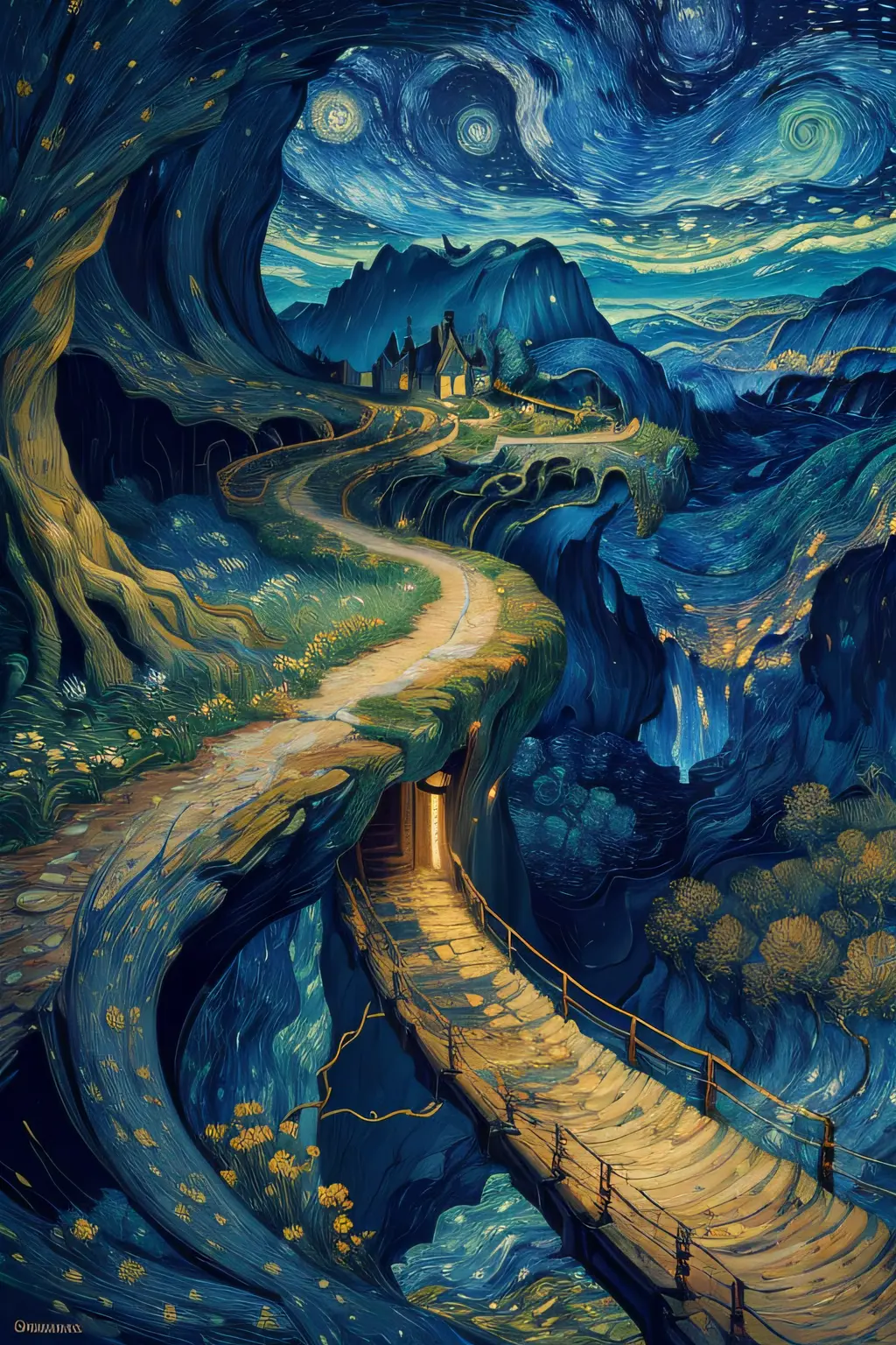 ((best quality)), ((masterpiece)), (detailed), (realistic), girl, Abstract, Vincent van Gogh, The Persistence of Memory, landscape