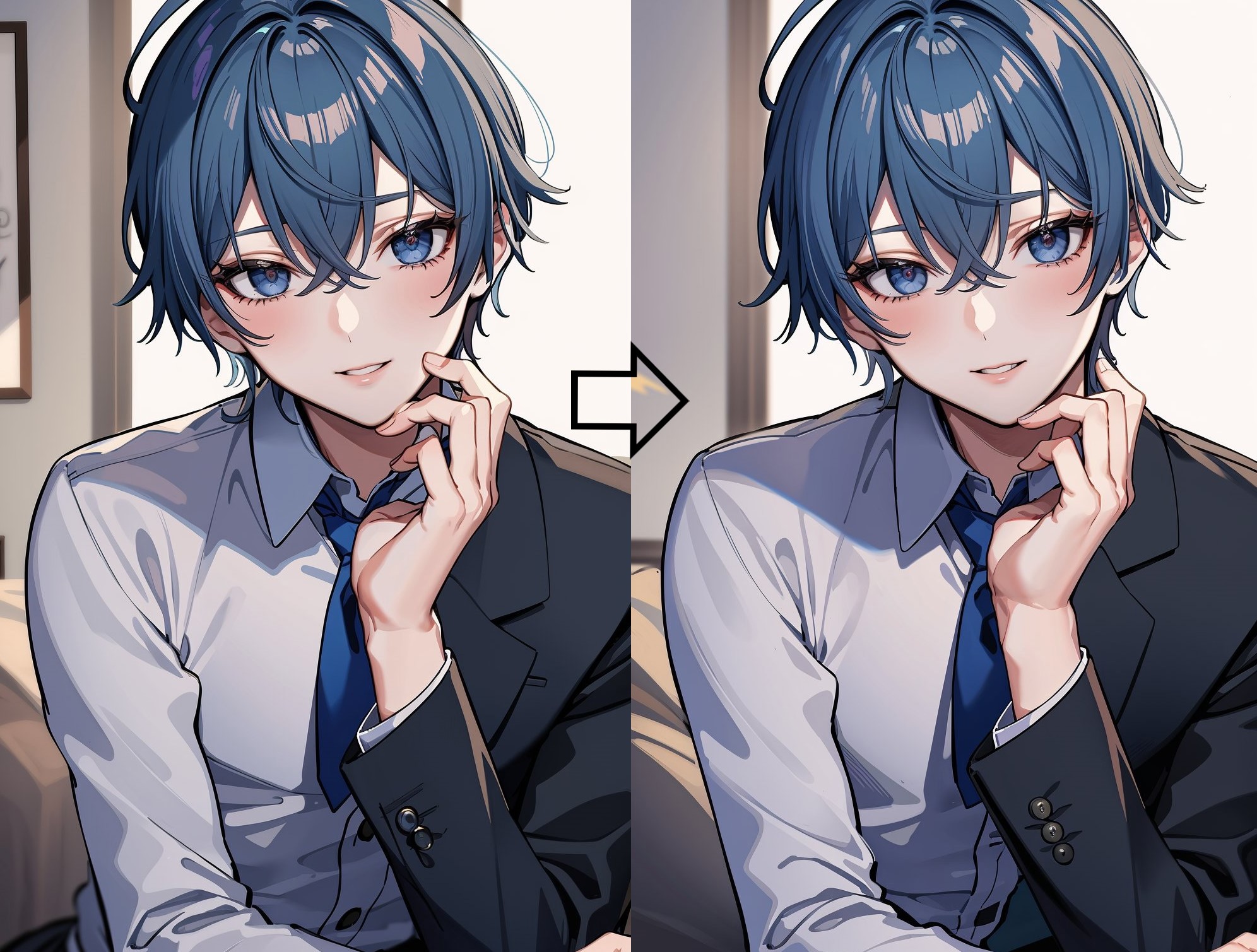 (masterpiece, best quality:1.3), 1boy, solo, young adult, nice hands, Latvian, slate blue hair <lora:GoodHands-vanilla-000020:1>