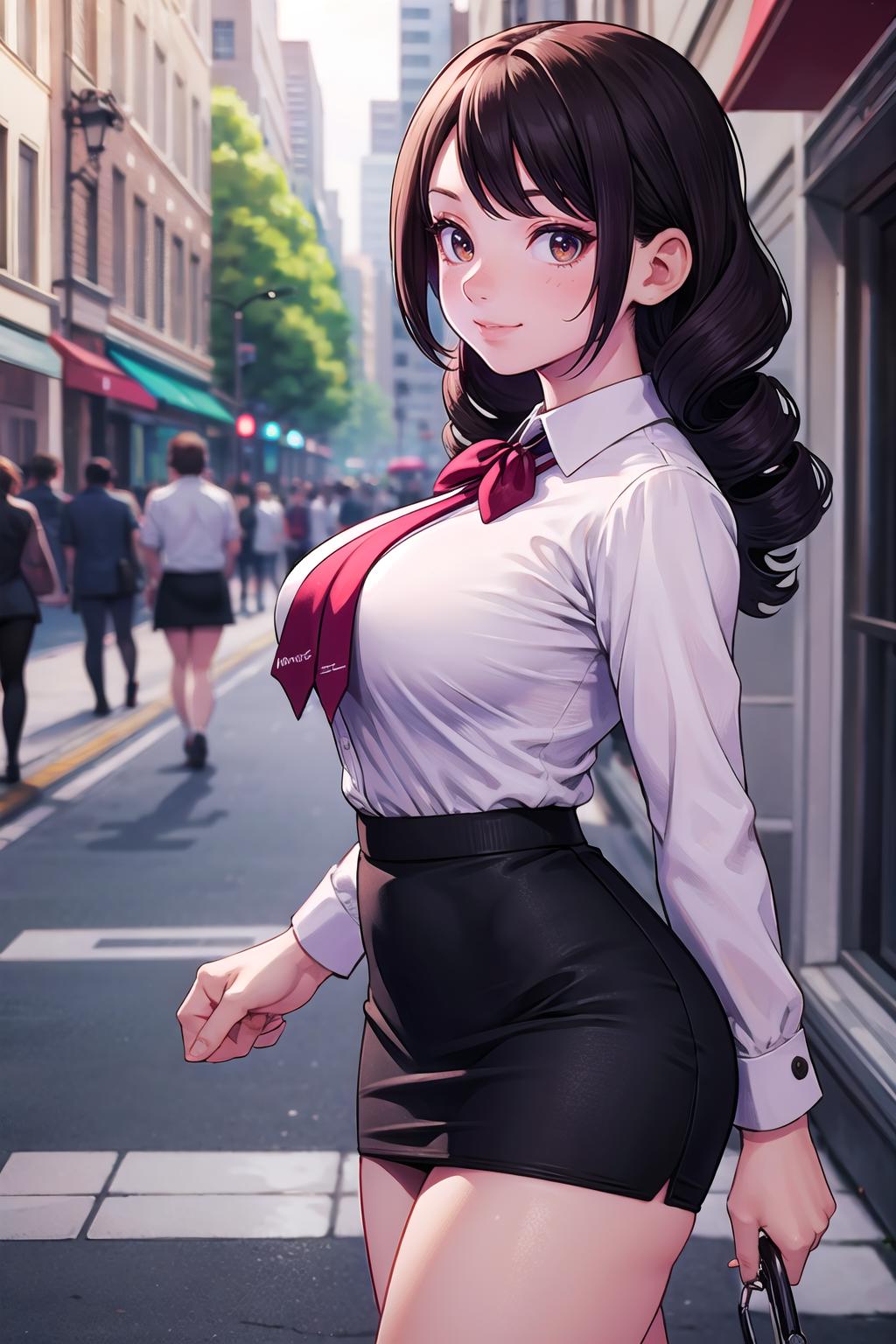 street,crowd:1.2,depth of field,looking at viewer,standing,from side,upper body,legsupsexms