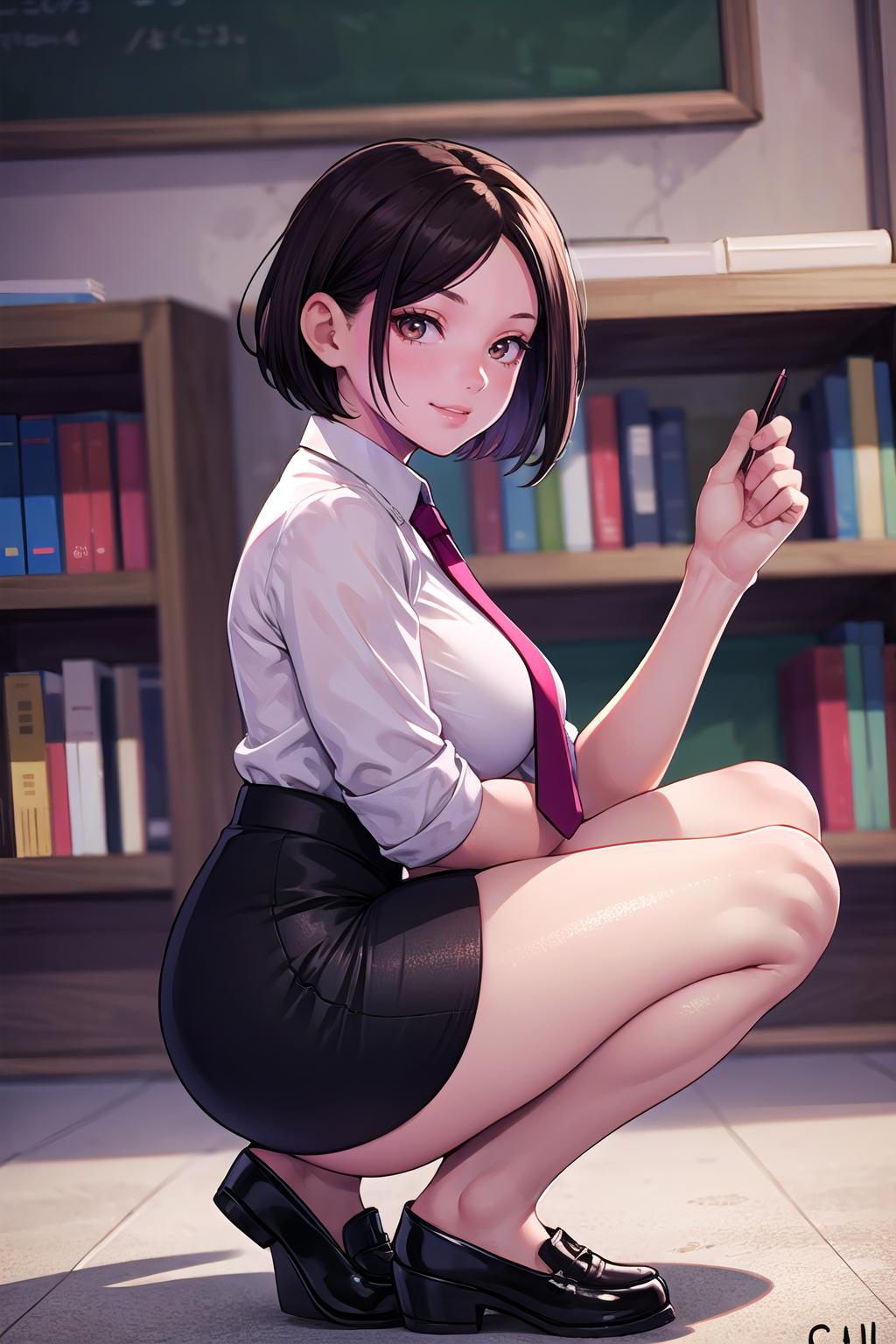 school uniform,ribborn, ((pencil skirt)),pantyhose,flat shoes