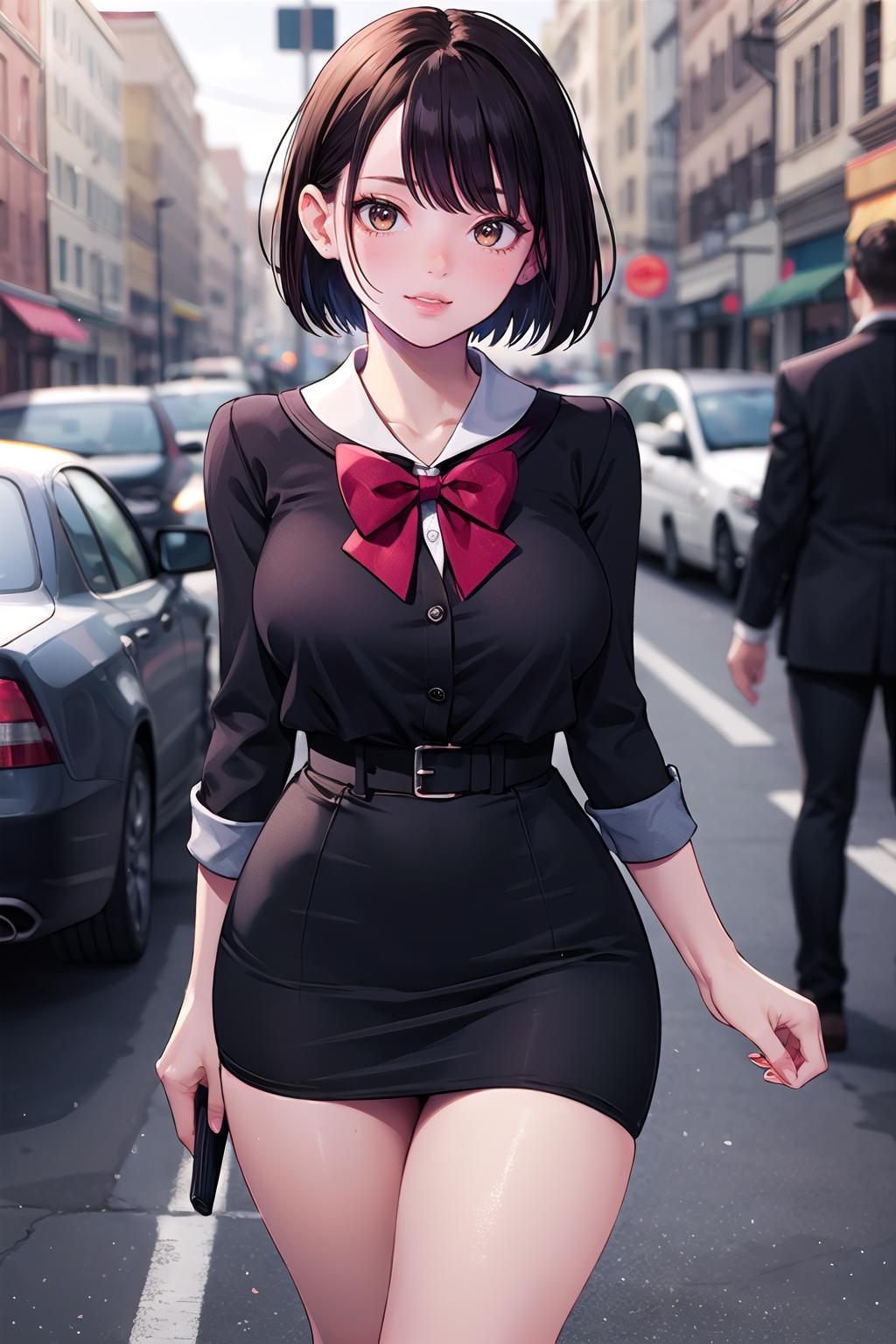 school uniform,ribborn, ((pencil skirt)),pantyhose,sneakers