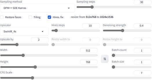 1. Hires.fix -> SwinIR_4x或R-ESRGAN 4x+ Anime6B
