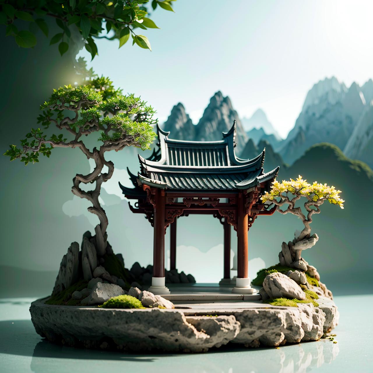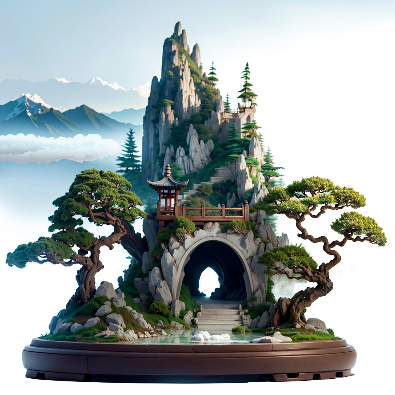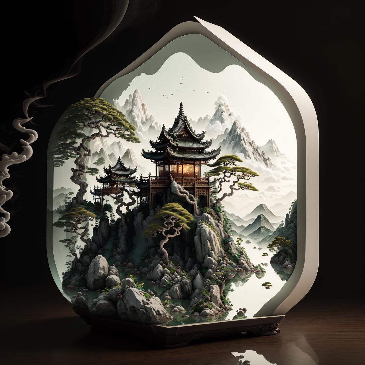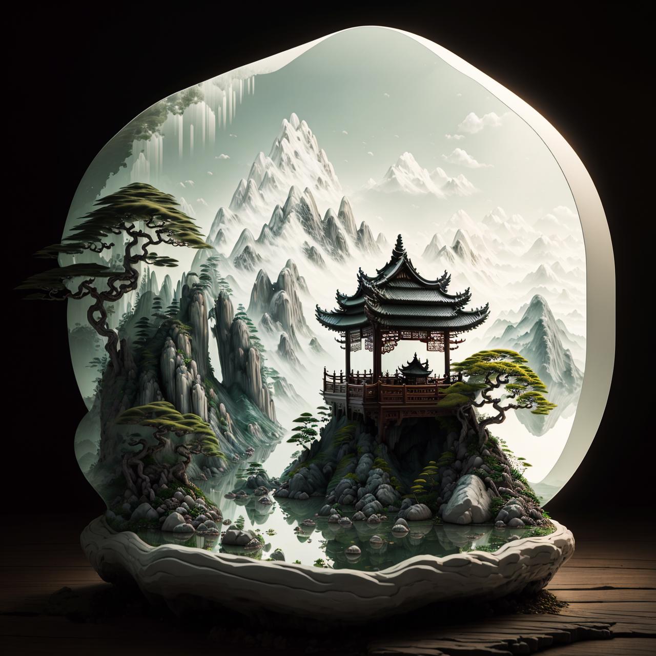 看到一些MJ生成的中国山水微缩模型,感觉十分惊艳,于是就炼了这个lora,以证明sd不输mj。
