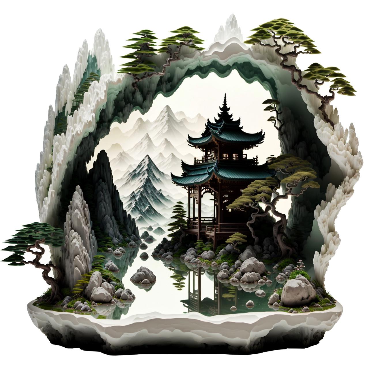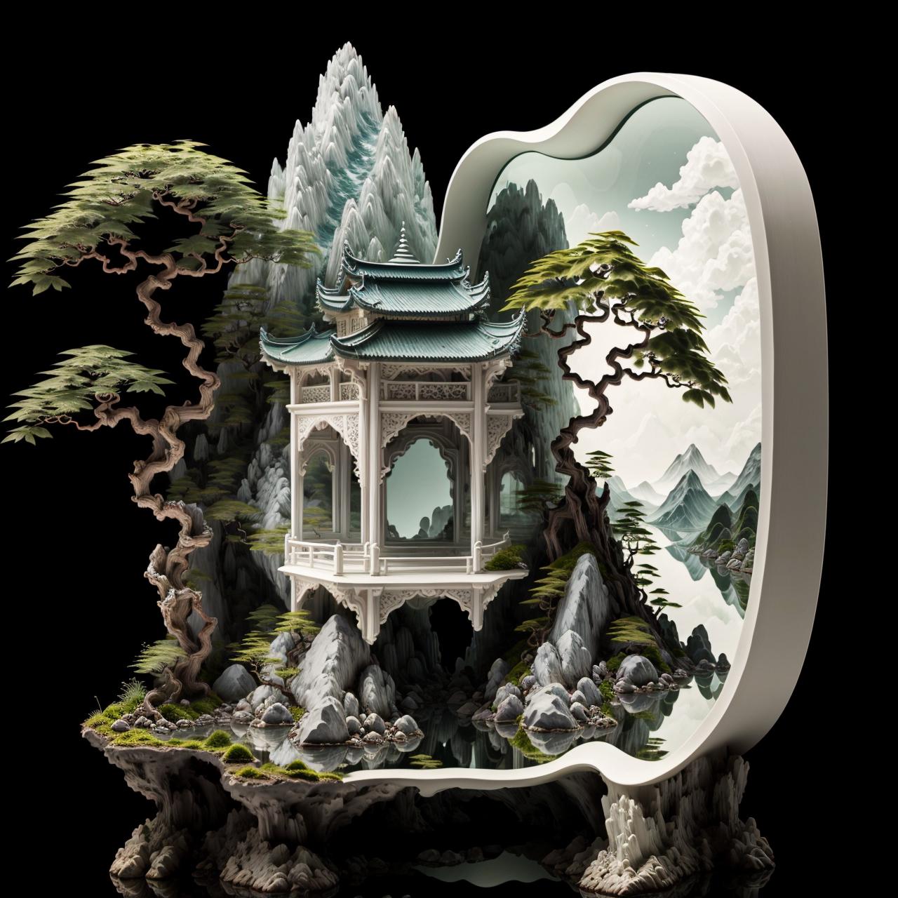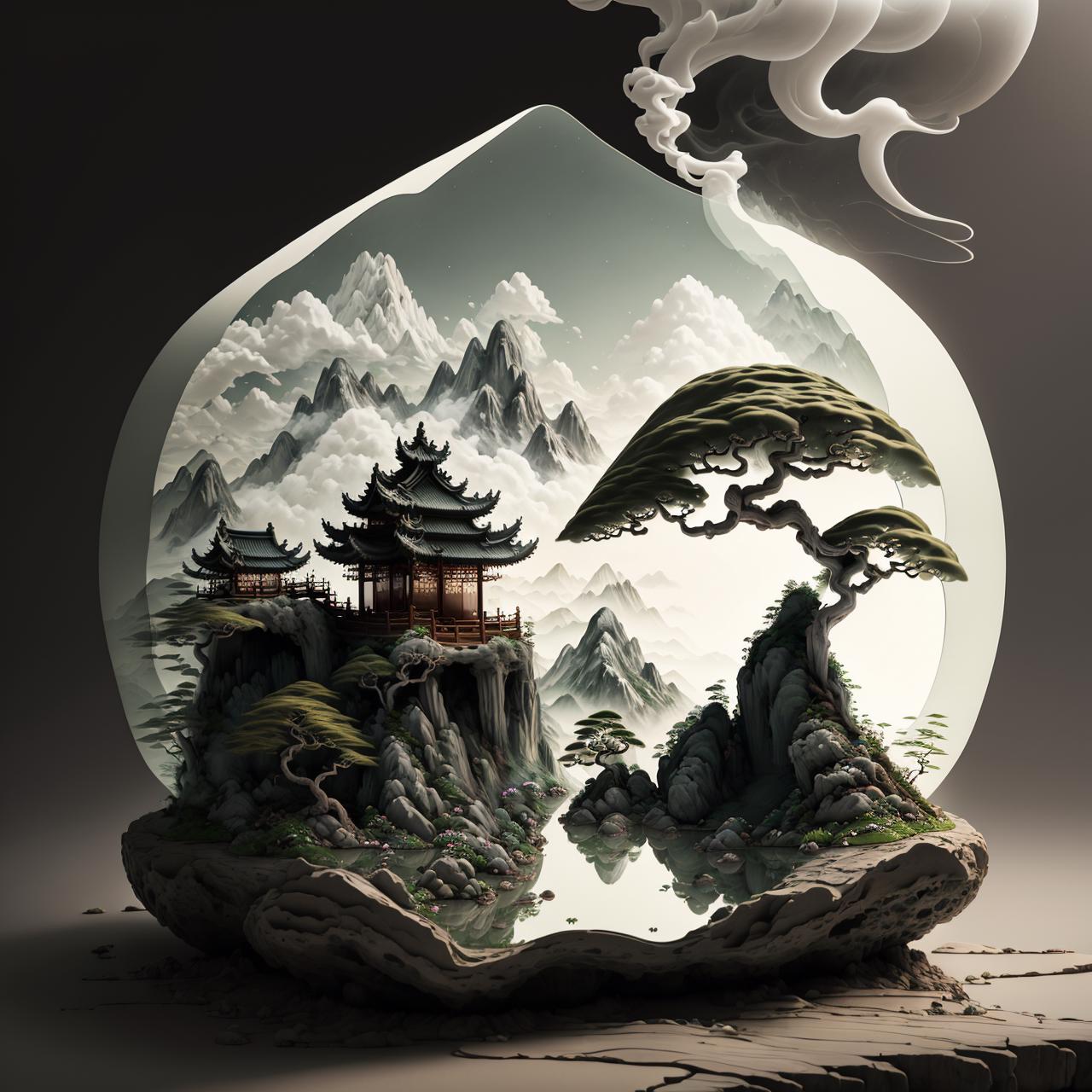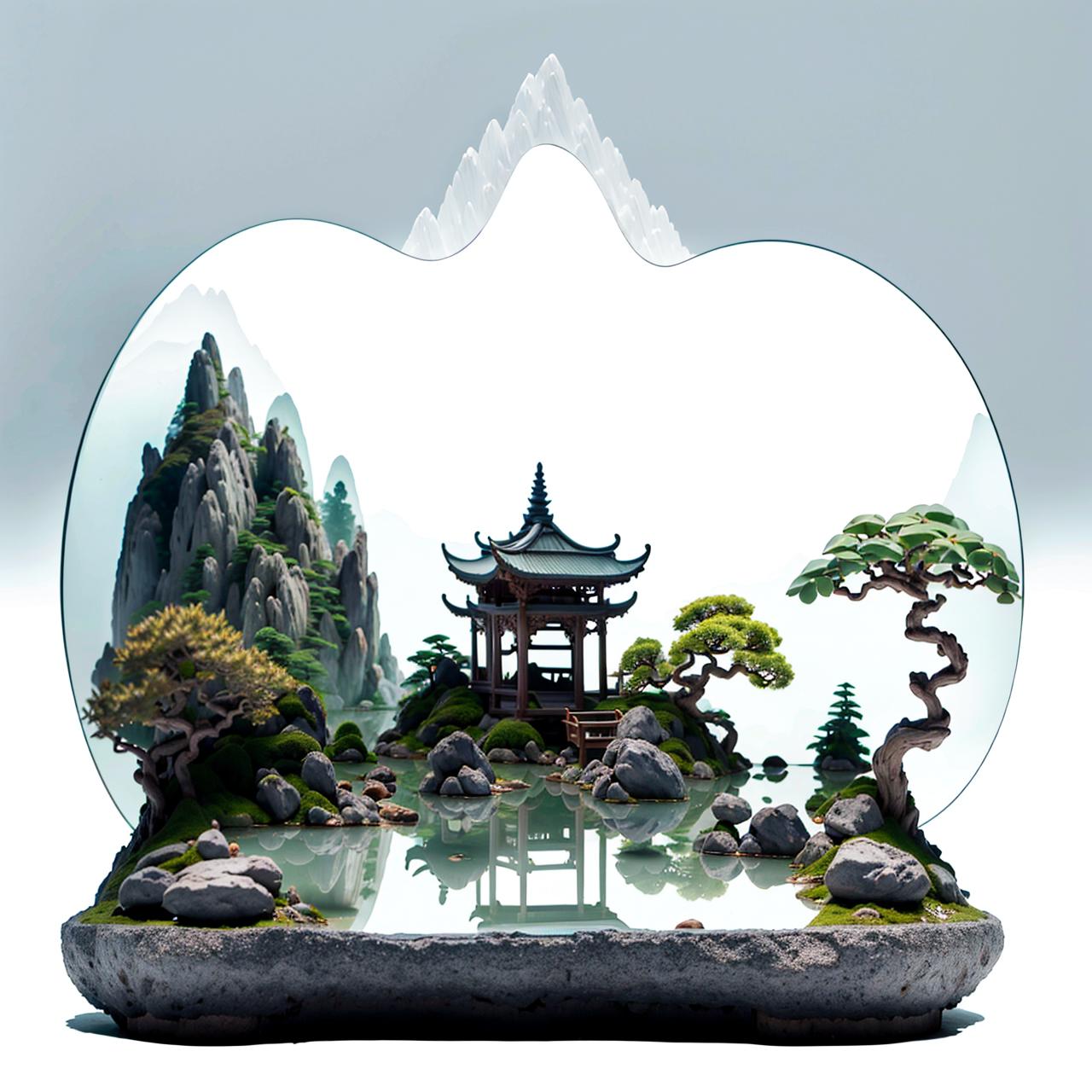 看到一些MJ生成的中国山水微缩模型,感觉十分惊艳,于是就炼了这个lora,以证明sd不输mj。